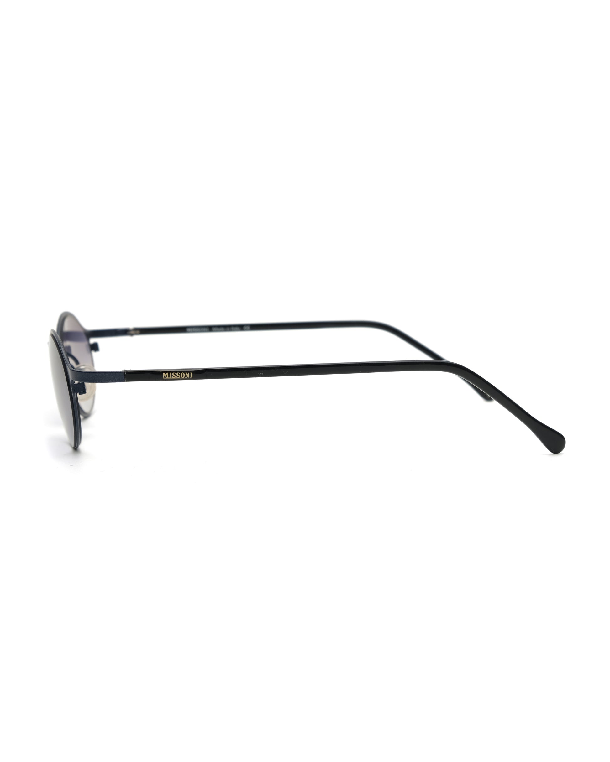 Split-frame construction with metallic elements and screw-mounted gradient lenses with plum undertones.