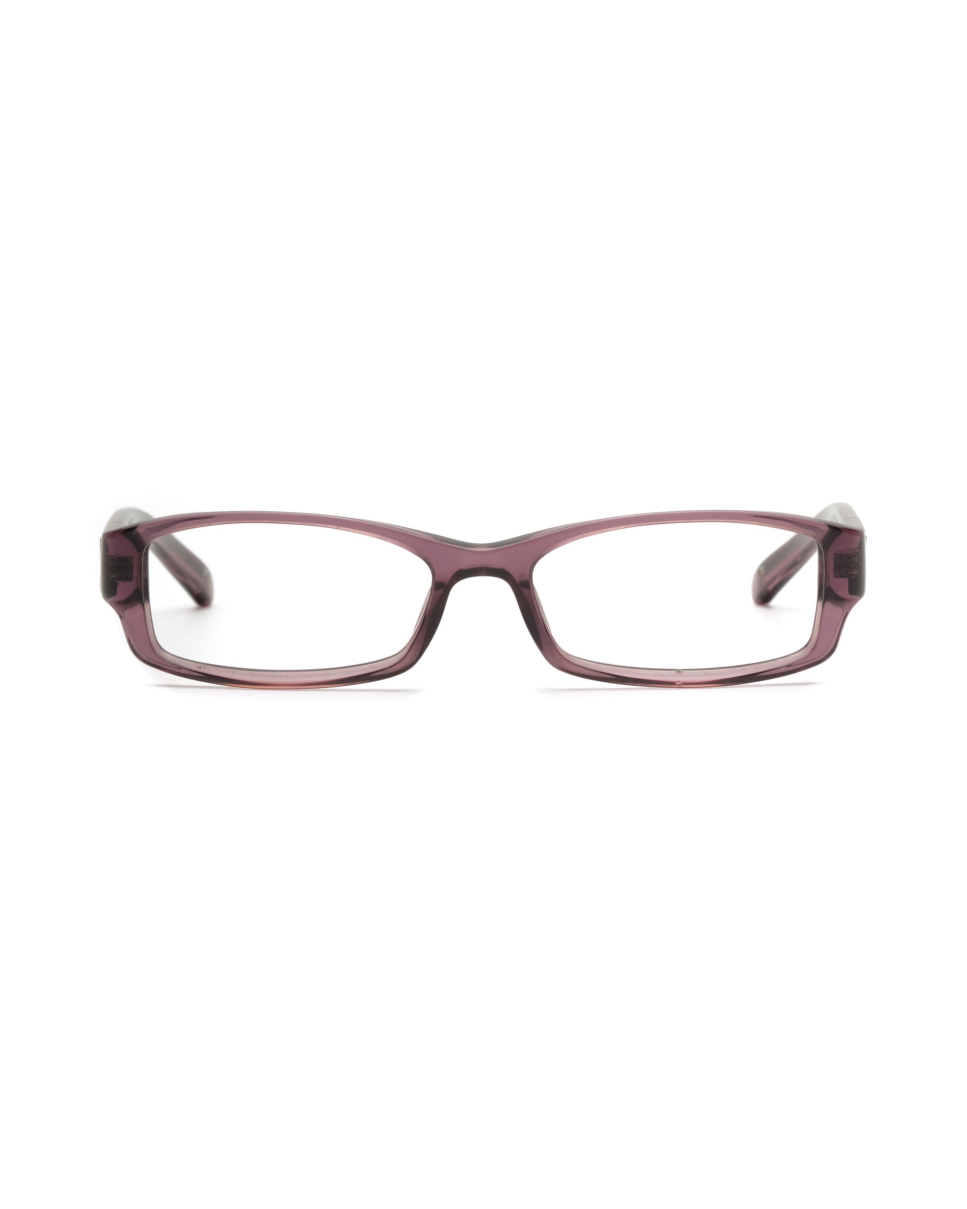 Transparent purple frame with silver inserted element on the temples.